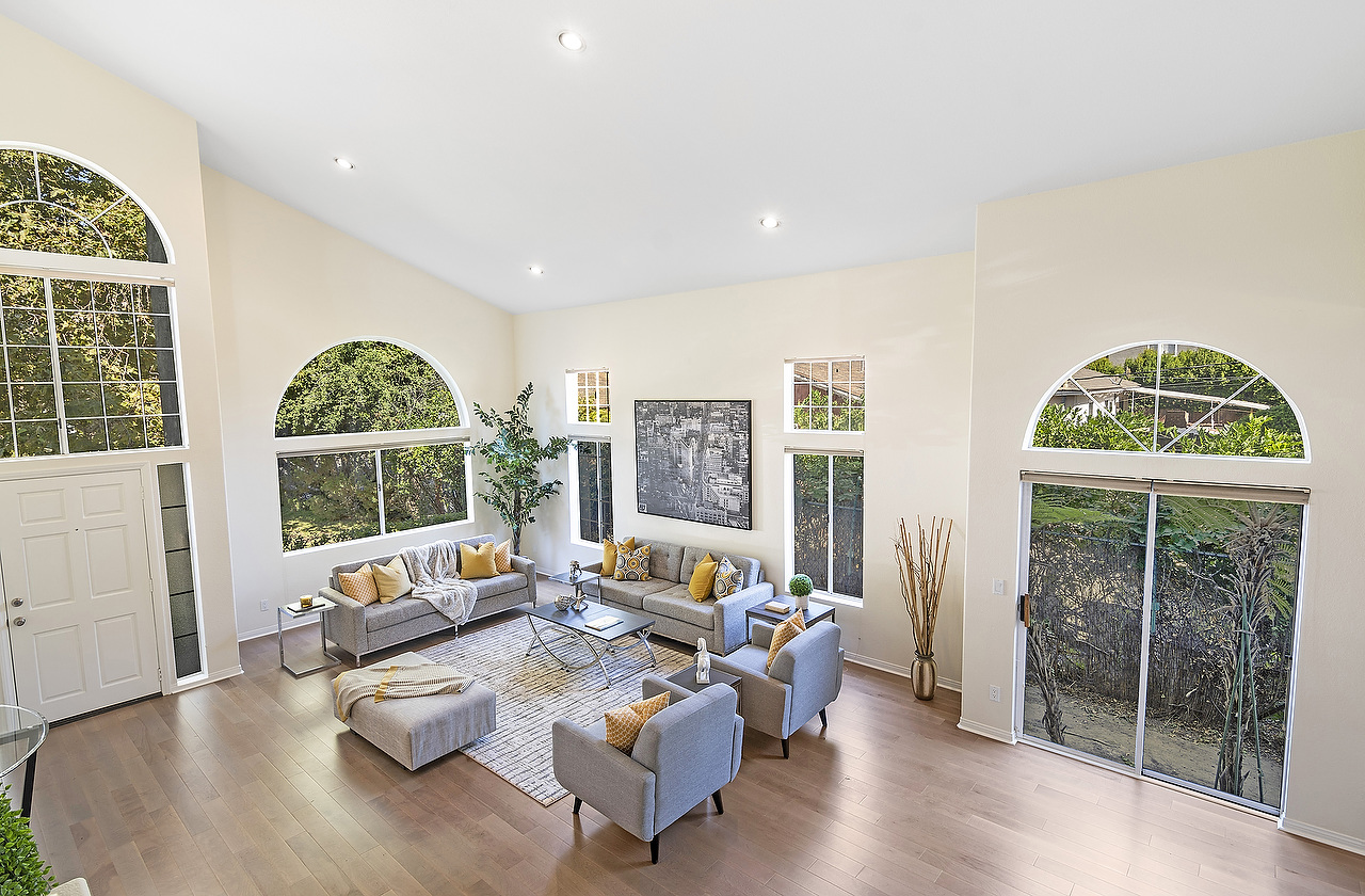 4 bedroom 4 bathroom Traditional located on a quiet tree-lined street in the heart of Sherman Oaks. Lovingly cared for over the years and recently updated with hardwood floors throughout, this home boasts expansive main rooms that open to one another creating a seamless interior flow. The sun-soaked living room with impressive 2-story vaulted ceiling opens to a dining room with backyard views. Enjoy the gracious family room with warm wood burning fireplace and the adjacent eat-in kitchen, complete with ample counter space and cabinets for storage. This space is accented by a wall of windows that allow for an abundance of natural light, while a sliding glass door provides access to the private backyard, ideal for year round indoor-outdoor living.